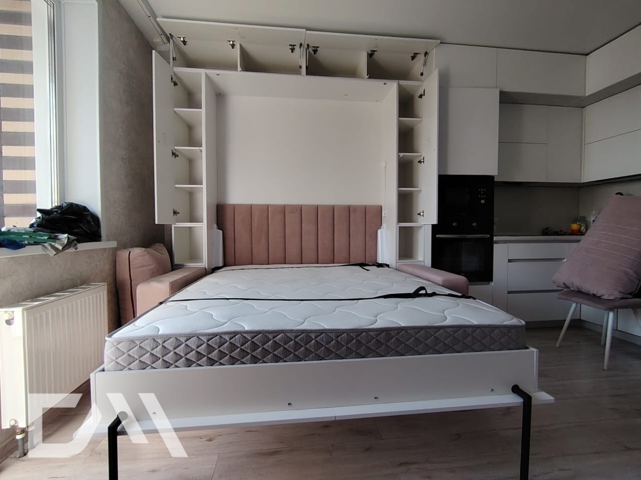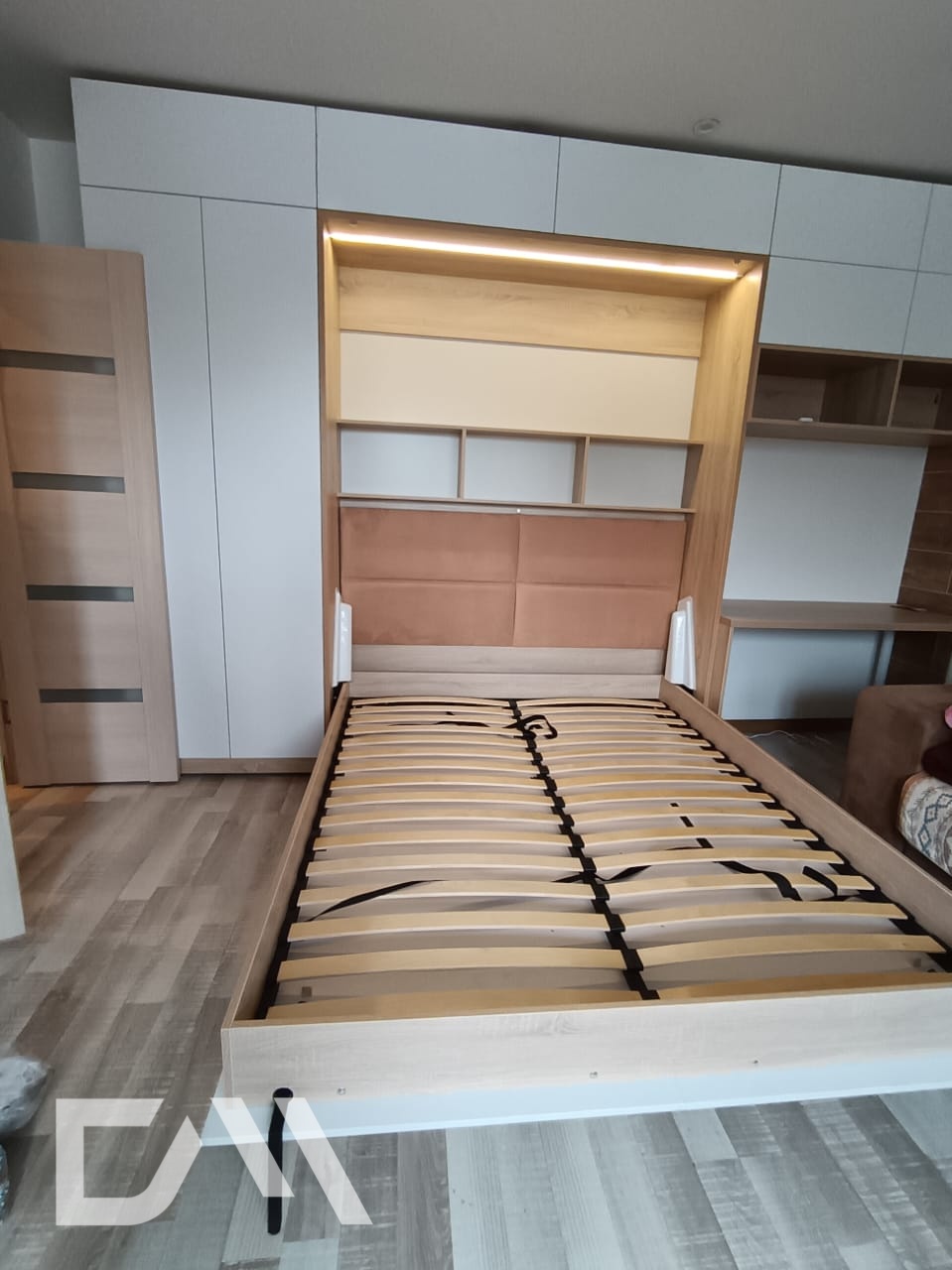 Это могут быть односпальные, полуторные или двуспальные шкафы-кровати, изготовленные на заказ. При производстве используются: