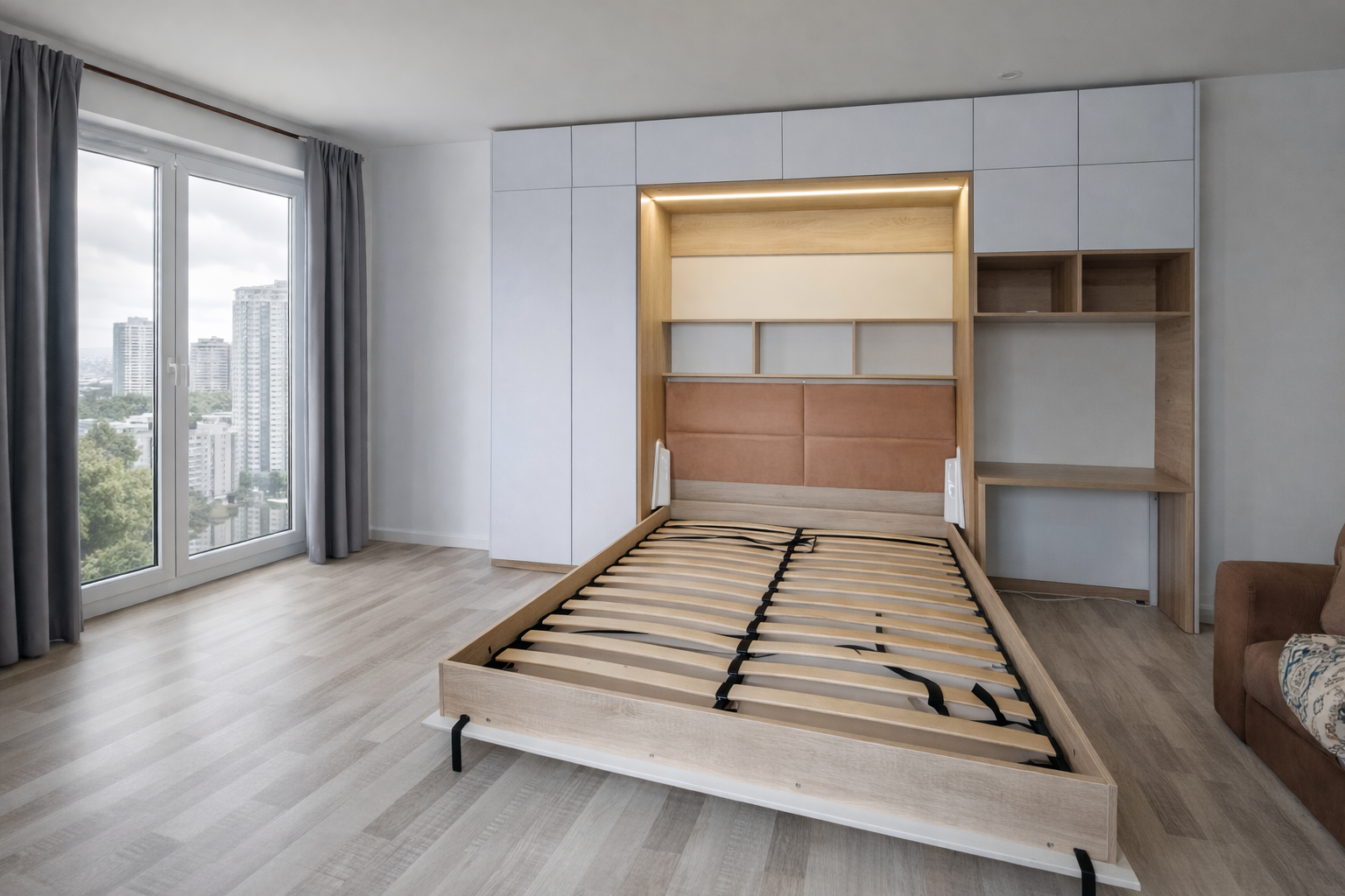 Современная шкаф-кровать - это отличный вариант организации пространства, решение проблем со свободным местом, особенно в узких комнатах. У нас вы можете заказать шкаф-кровать по индивидуальным размерам в Томске, модель, позволяющую самостоятельно собрать откидную горизонтальную кровать, которая убирается в шкаф или комод.